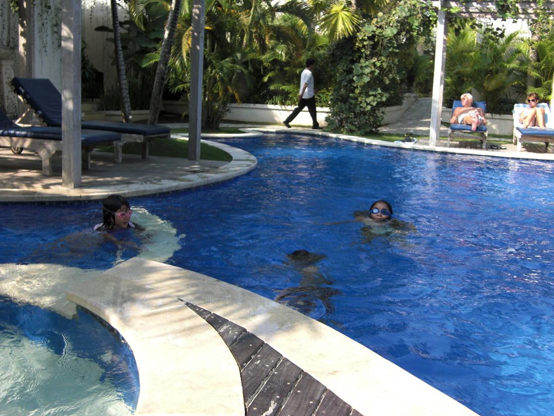 バリ島でスイムキャップを被っているのは我が子ともう一人のベストフレンドぐらいだと思う。二人とも同じような時期に日本からバリ島に来た。プールに入る時はスイムキャップは当たり前でしょ!フフフ