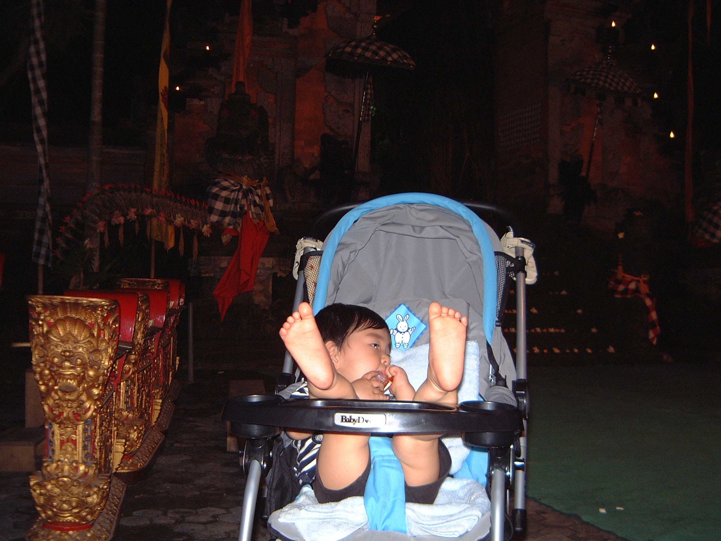 わが子の首が座ると2004年にはバリ島に出かけました。ベビーカーでの移動、暑かったかな?