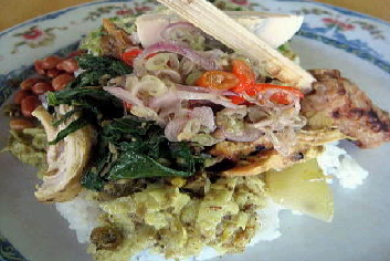 とっても辛い。でもこの辛さが癖になる。毎朝食べてしまう。最初の頃はメイドのクツッツにブンクスしてもらっていた。ナシチャンプルを頼むとバイクで出かけて行く。てっきり遠いもんだと思っていた。ある時気づいた。通りに出て、左20メートル行った右側のワルンで買っている事。歩けよ!