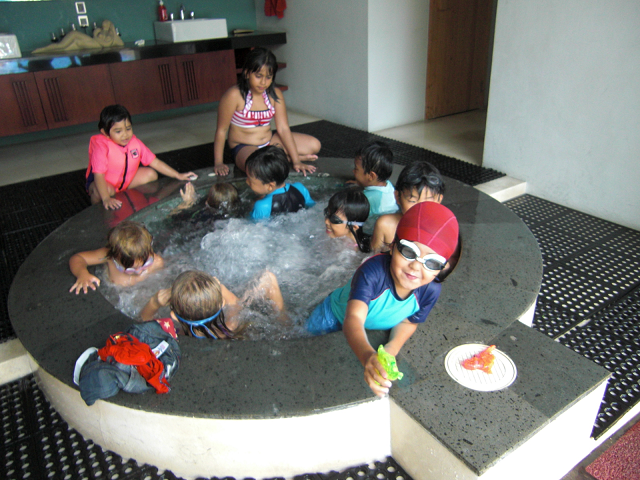 ベストフレンドの家に遊びに行きます。泊りもあります。フレンドはバリ島の王族だそうです。家はホテル並みの大きさ。大きさだけでなく設備も素晴らしい。すべてはお見せ出来ませんが、バースデーパーティーの時に撮った写真の一部です。大きなお庭が飾られ、遊具が並べられ、仮設テントでケーキや食事が提供されていました。プールやジャグジーに入る子供達もいました。ちなみにスイムキャップは我が子です。バリ島に来る前にスイミングスクールに行っていました。家にプールがあるので、溺れたらシャレにならないので…