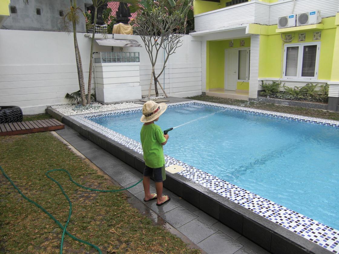 ベストフレンドの家に遊びに行きます。泊りもあります。フレンドはバリ島の王族だそうです。家はホテル並みの大きさ。大きさだけでなく設備も素晴らしい。すべてはお見せ出来ませんが、バースデーパーティーの時に撮った写真の一部です。大きなお庭が飾られ、遊具が並べられ、仮設テントでケーキや食事が提供されていました。プールやジャグジーに入る子供達もいました。ちなみにスイムキャップは我が子です。バリ島に来る前にスイミングスクールに行っていました。家にプールがあるので、溺れたらシャレにならないので…